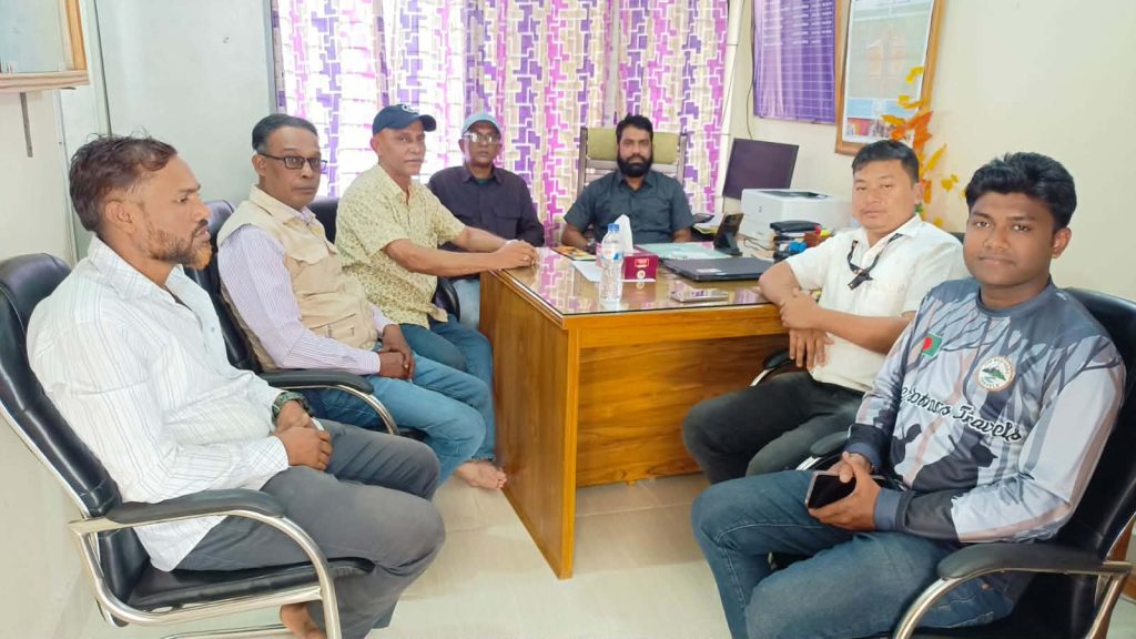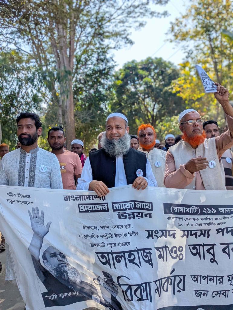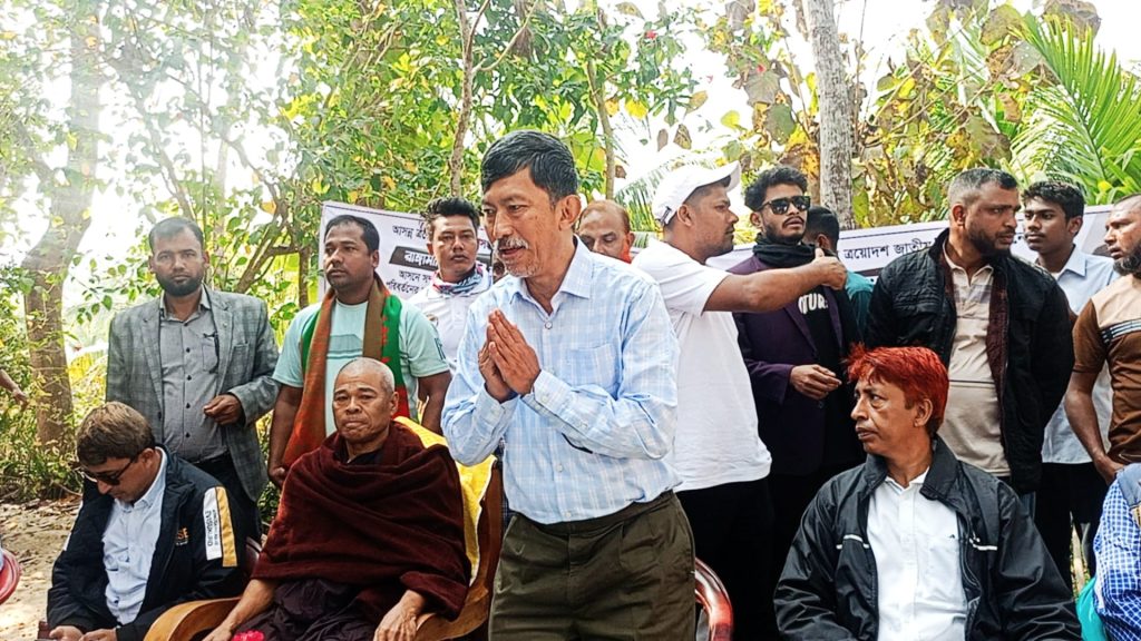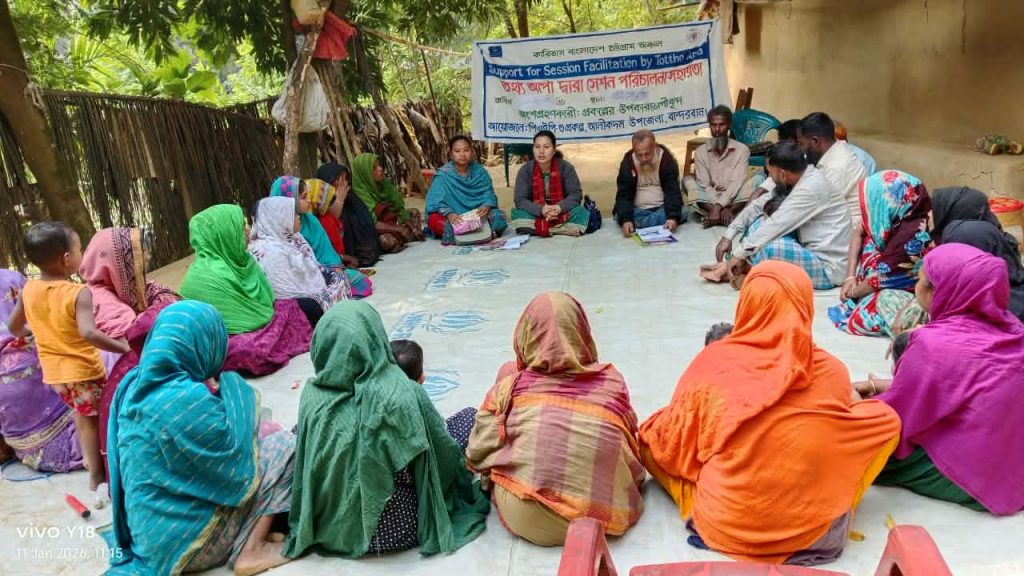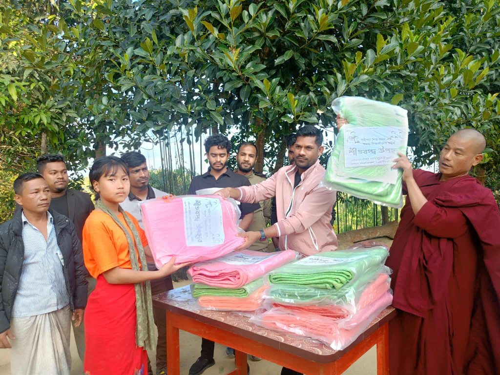 আত্মনির্ভরতার পথে : মৌমাছি পালনে আদিবাসী অধিকার ভোগী বিলাইছড়ি মৌইন পাড়া, রাঙ্গামাটি: EU-এর অর্থায়নে মানুষের জন্য ফাউন্ডেশন (MJF) পরিচালিত এবং হিল ফ্লাওয়ার (Hill Flower) কর্তৃক বাস্তবায়িত প্রকল্পের অধীনে মৌমাছি পালন প্রশিক্ষণ গ্রহণের পর এক আদিবাসী অধিকার ভোগী তার নতুন জীবিকা শুরু করার প্রস্তুতি নিচ্ছেন। ছবির এই আদিবাসী অধিকার ভোগী তার প্রশিক্ষণ শেষে পাওয়া আধুনিক কাঠের মৌমাছির বাক্স (Bee Box) প্রস্তুত করছেন। পাহাড়ের পরিবেশ উপযোগী এই বাক্সগুলি দিয়ে বৈজ্ঞানিক পদ্ধতিতে মধু উৎপাদন করা সম্ভব। স্থানীয়ভাবে এই ধরনের উদ্যোগ শুধু তার পারিবারিক আয়ের উৎস বৃদ্ধি করবে না, বরং এই অঞ্চলের জীববৈচিত্র্য সংরক্ষণ এবং অর্থনৈতিক স্বনির্ভরতা অর্জনেও সহায়ক হবে। এই প্রকল্পটি পার্বত্য চট্টগ্রামের অতি দারিদ্র্য বিমোচন এবং জলবায়ু সহনশীল জীবিকায়নে গুরুত্বপূর্ণ ভূমিকা রাখছে।