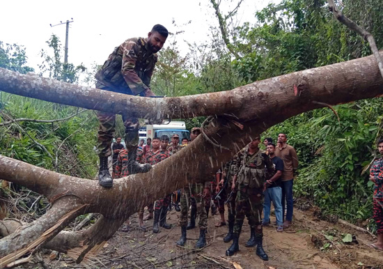 আজ ২৮ এপ্রিল ২০২৬ ইং প্রবল ঝড় ও বৃষ্টির ফলে সাজেক-বাঘাইহাট সড়কের শুকনা নন্দারাম এবং গঙ্গারাম উভয় এলাকায় রাস্তার উপর বিশালাকার গাছ উপড়ে পড়ায় সড়ক যোগাযোগ সম্পূর্ণ বিচ্ছিন্ন হয়ে টুরিস্ট ও সাধারন জনগন আটকে পড়ে। ঘটনাস্থলে উদ্ধার কাজ পরিচালনার জন্য ১৪ ইবি বাঘাইহাট জোন থেকে সেনাবাহিনীর একটি বিশেষ দল ও দীঘিনালা ফায়ার সার্ভিস এর একটি বিশেষ দল উদ্ধার সরঞ্জামসহ গমন করেন এবং সড়ক থেকে গাছ কেটে পুনরায় যানচলাচল স্বাভাবিক করেন।