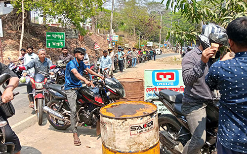 ❝কাপ্তাইয়ে জ্বালানি তেলের তীব্র সংকট পাম্পে মোটরসাইকেলের দীর্ঘ সারি নিয়ন্ত্রণে পুলিশ❞
