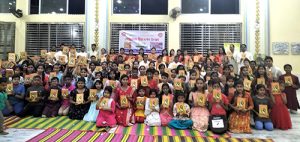 সভা শেষে গীতা শিক্ষা সমন্বয় কমিটি কর্তৃক পরিচালিত শহরের ১৯ টি গীতা স্কুলের প্রায় ২ শতাধিক শিক্ষার্থিদের হাতে মহা মুল্যবান শ্রীমদ্ভগবদ গীতা তুলে দেন।